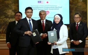 弊会理事長レモンも会議に参加し、日本のハラール産業を担う一人として日本におけるハラール産業の現状説明などを行いました。弊会からは、「JAKIM監査員による、日本の認証団体に所属する監査員対象のトレーニング実施」また、「日本の共通飲食店認証基準策定のために協力」の2点を要望としてお伝えしました。副首相からは支援を約束するという力強いお言葉を頂き、その場でマレーシアハラール開発庁(HDC)と弊会が支援を約束する合意書を交わすことになりました。この会議の内容は、日本とマレーシアの良好な関係性を示す事例の一つとして、マレーシアでは大々的に報道され(※2)、マレーシアが国を挙げて日本を支援する体制にあることの表明となりました。